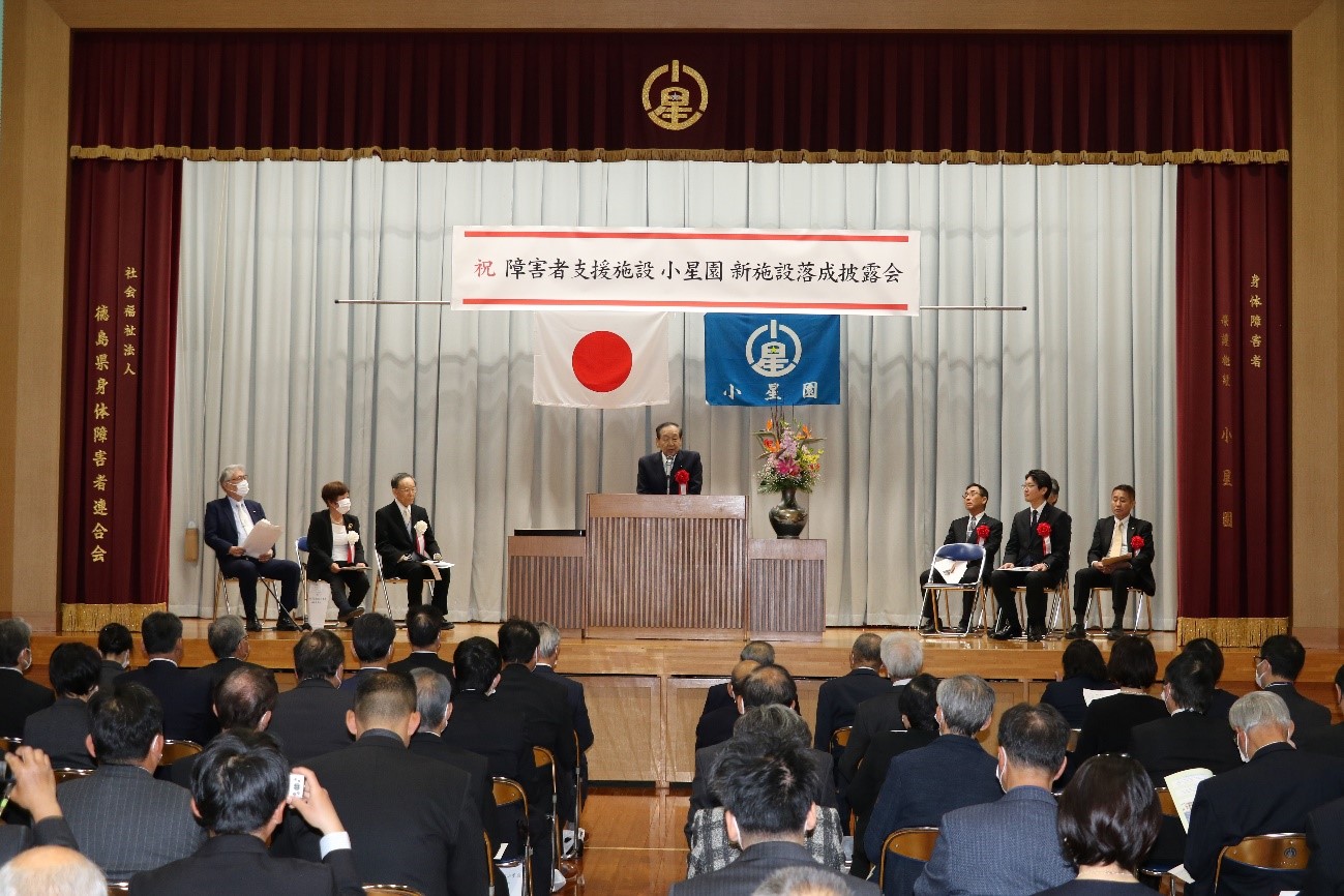 また、今年度はリトルスターの発行が出来ず申し訳ありません この度小星園は多くの支援をいただき新施設が建てられました。 令和7年3月14日に落成披露会を行う事が出来ました。 新施設玄関前での来賓の方々によるテープカットの様子や 支援センター多目的ホールでの式典の様子をお届けします。
