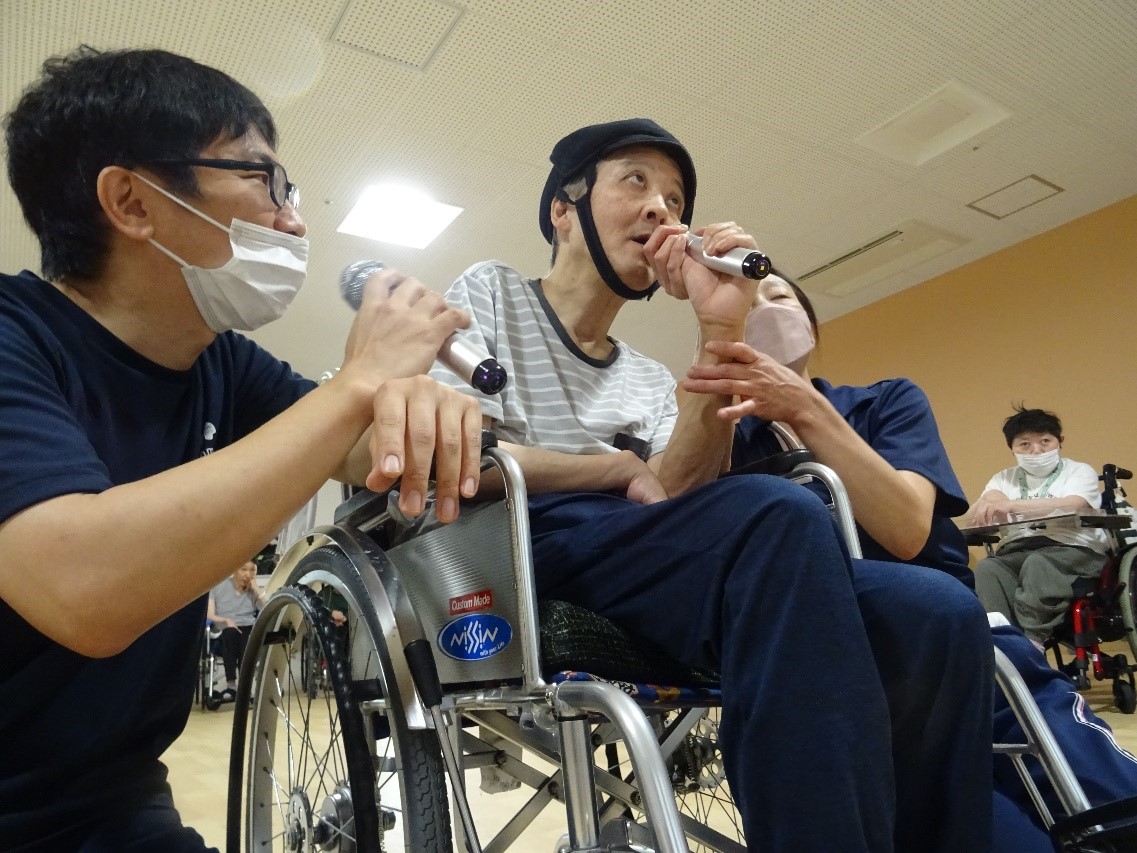 新施設のこけら落とし…ではないですが6月はカラオケ大会を開きました。 利用者さんも張り切ってコンサート会場のようにマイクに向かって歌われています。 これからも新しい施設で活き活きした活動ができるようスタッフ一同支援していきます。