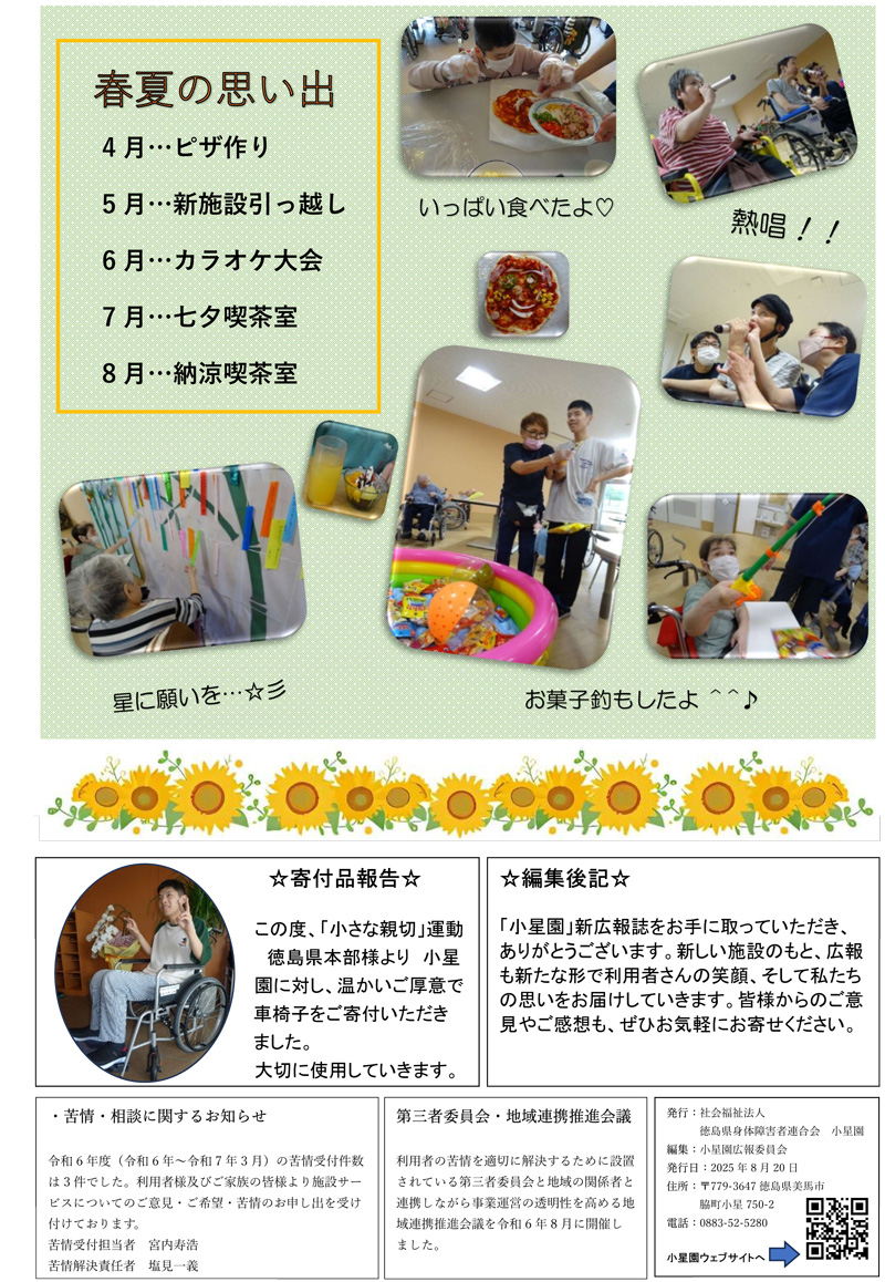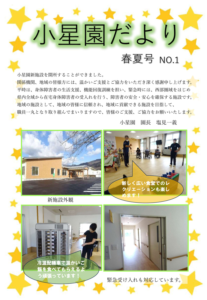 小星園ケアホーム、障害者支援センター小星園、美馬市脇町西部デイサービスセンター、障害者機能訓練施設 小星園のぞみのパンフレットが新しくなりました。パンフレットの送付も行っておりますので、ご入り用の方はお気軽にお申し付け下さい。