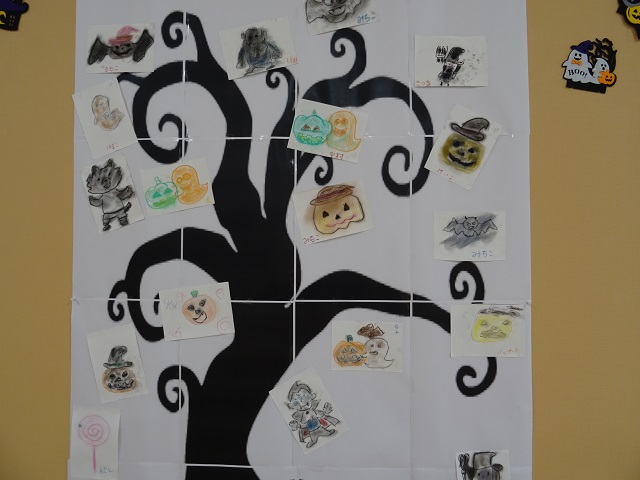 10月は防災訓練を行っています。施設が災害時に地域の避難所に指定されていることもあり避難所運営ゲーム (hug-ハグ)を使って災害を想定し、避難所運営について学びました。 また、避難経路の確認や車椅子利用者の避難誘導に重点を置いて実施しています。防災知識を学び、再確認もする事で職員は普段の業務では気づきにくいリスクや、介助時の困難さを体験的に理解することができました。 また利用者様との行事ではハロウィン行事として利用者様によるアート作品制作が行われ、食堂に展示しています。とても好評でした。