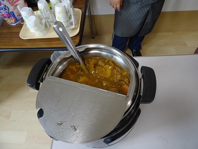 昼食時に焼きたてのたこ焼きを提供しました。食堂内にはたこ焼きの良い匂いがしており、出来上がるたこ焼きを見て、焼きたてのたこ焼きを食べ、とても喜んで頂きました。大粒のたこ焼きだったのでお腹いっぱいになったようです♪
