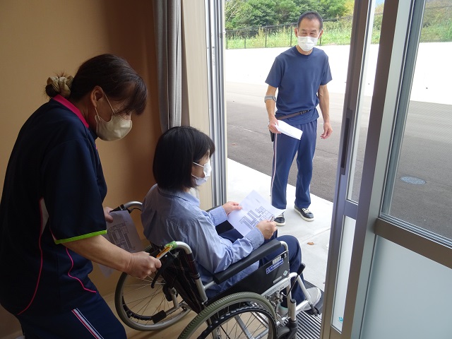 感染症対策をしつつ利用者の方と楽しめるよう工夫して出し物を行っています。